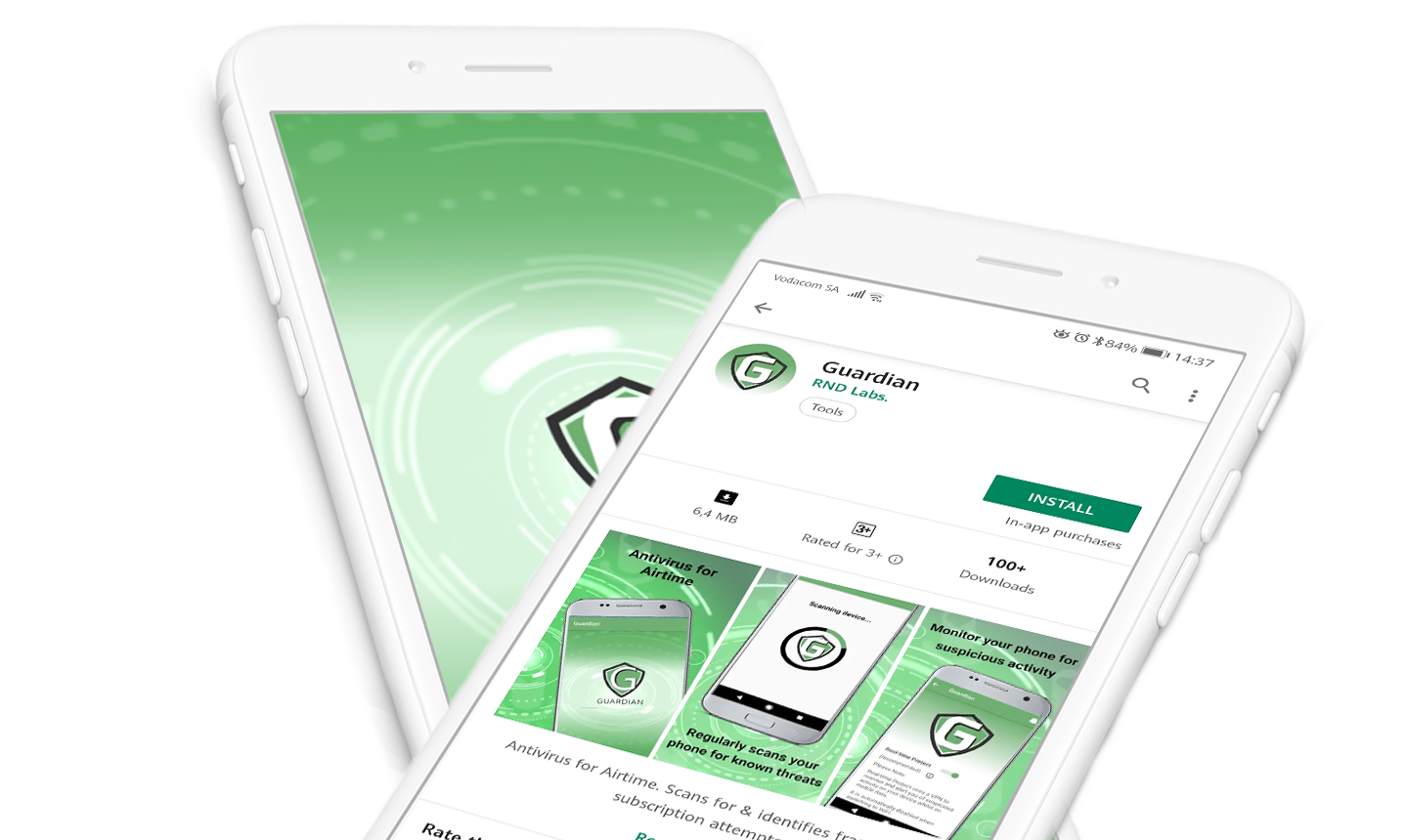 Guardian anti-virus app is currently available to users of all South African mobile network Black cordless phone with written AIRTIME on the screen. It will be available for free for an unspecified limited of time on Google Play Store for the first 1,000 downloaders. Users soon to be charged R9.99 per month with the first free trial of 30 days.